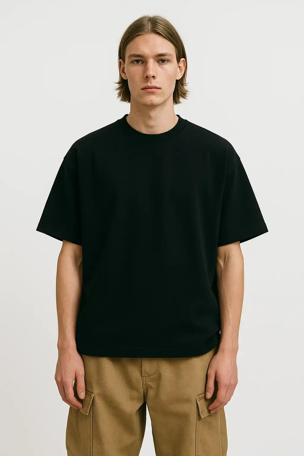 The Oversized fit showcases the drape and structure of the T-Shirt cleanly, with Cargo Pants rounding out a complete men Lifestyle outfit. Shot in Lifestyle style against seamless white backdrop, the high-contrast result works directly on Shopify product pages, Instagram posts, print-on-demand listings, and fashion lookbooks, no editing required.