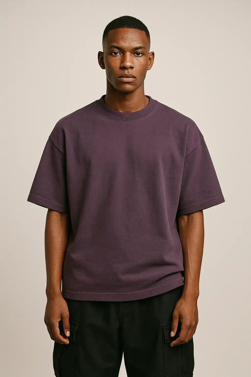 The Oversized fit showcases the drape and structure of the T-Shirt cleanly, with Cargo Pants rounding out a complete men Lifestyle outfit. Shot in Lifestyle style against seamless white backdrop, the high-contrast result works directly on Shopify product pages, Instagram posts, print-on-demand listings, and fashion lookbooks, no editing required.