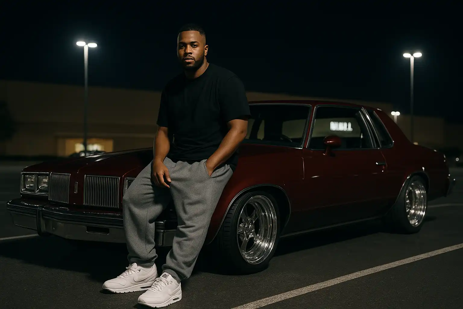 A high-contrast AI Male clothing mockup built for Casual product listings and lookbooks.