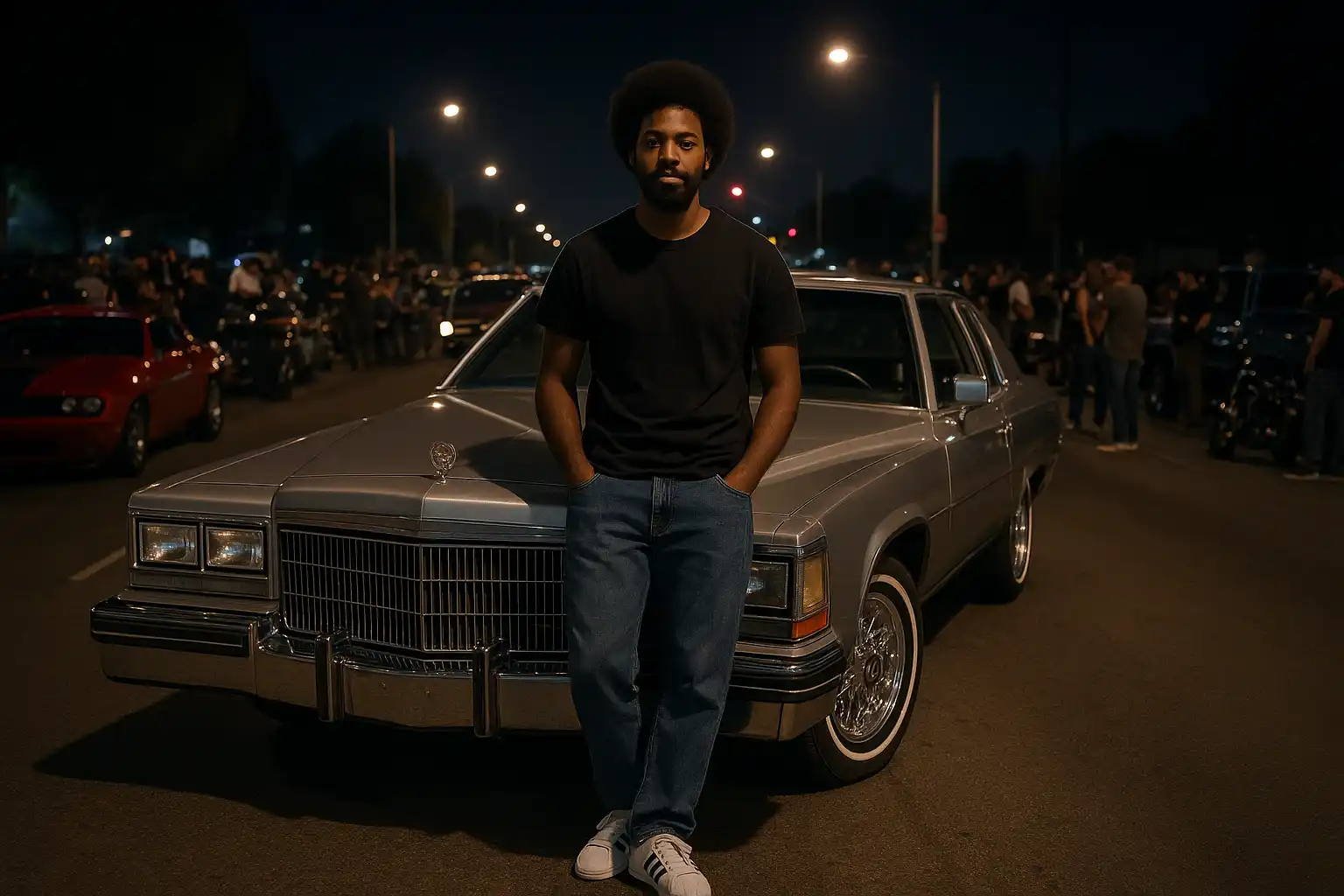 This Regular T-Shirt and Jeans AI mockup features a 25-year-old African Male model, Front-facing in a Symmetrical Standing Pose. Built for Studio lookbook brands and e-commerce product pages, this men clothing mockup delivers a realistic, print-ready result without a photoshoot, ideal for designers who need a professional AI model mockup fast.